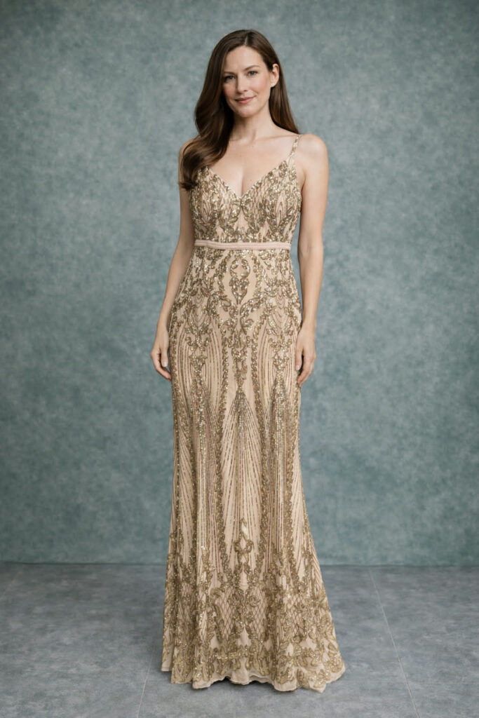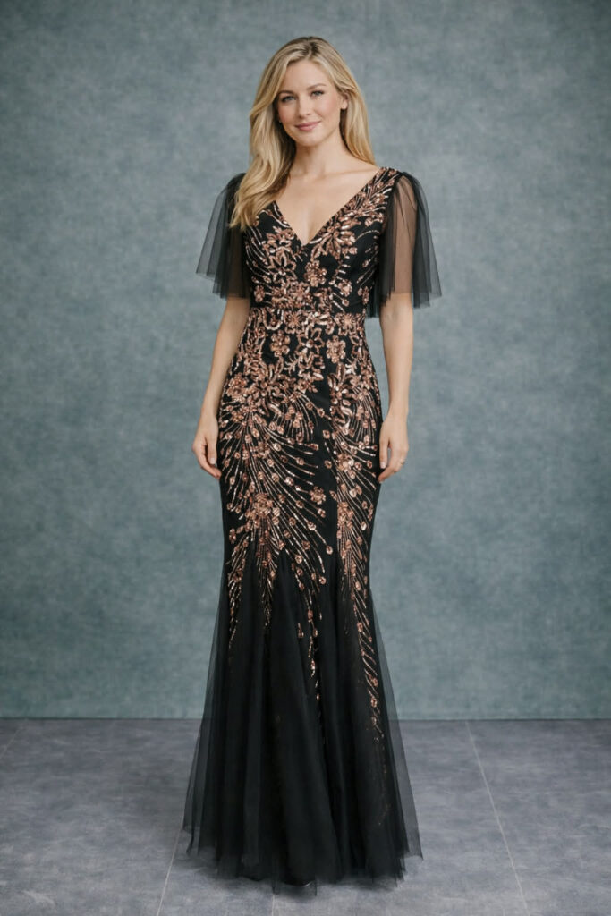 Musta ja kullaga pikk kleit